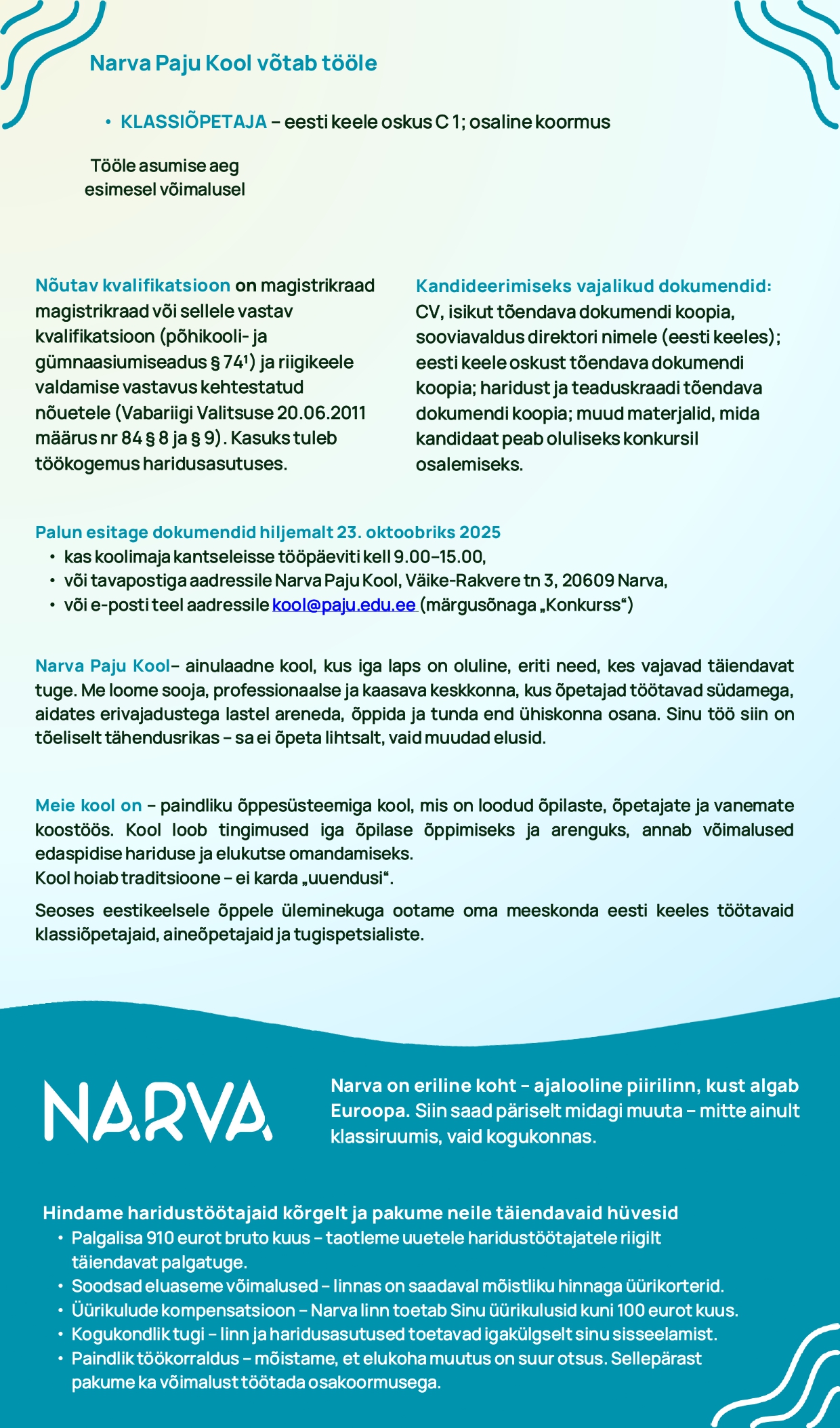 Narva Paju Kooli töökuulutus